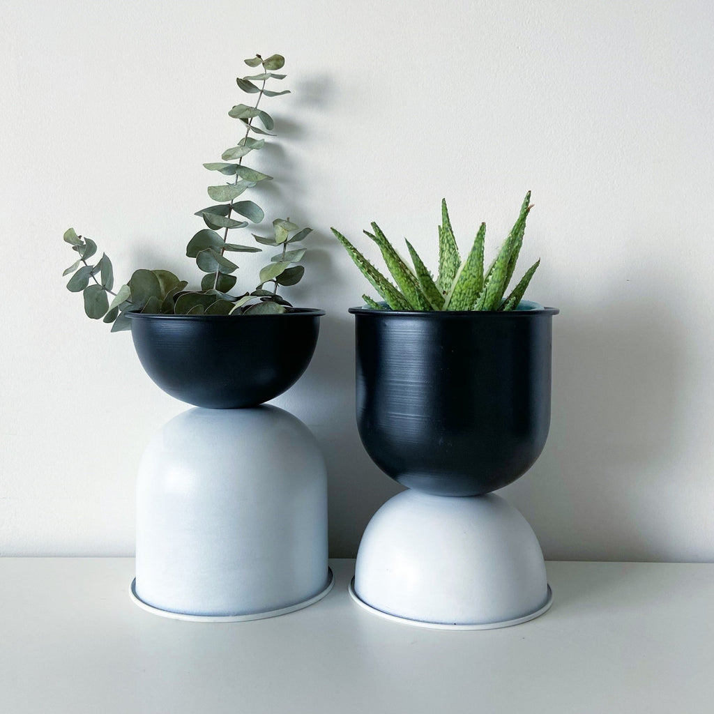 "Venus" Double Decker Metal Planter / Pot in Matte Finish - Choose Black or White or Set